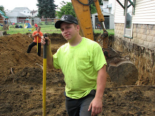 That line in the last photo is the water line, which was eventually re-routed… DH is in the orange and his cousin Johnny is in the bright yellow. At this point it was still a family affair of work!