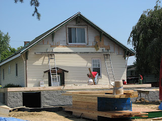 In between all this was the pouring of the patio and basement floors, filling in around the outside (aka the moat you see in a few of the pics), re-routing of the water line… the boring stuff 😉 This past week they framed up the roof and next week we’re due to get the new roof put on. I think I’m going to start updating on the house once a week, just so the posts won’t be this long from now on 😉 Thanks for bearing with me, if you got this far! lol