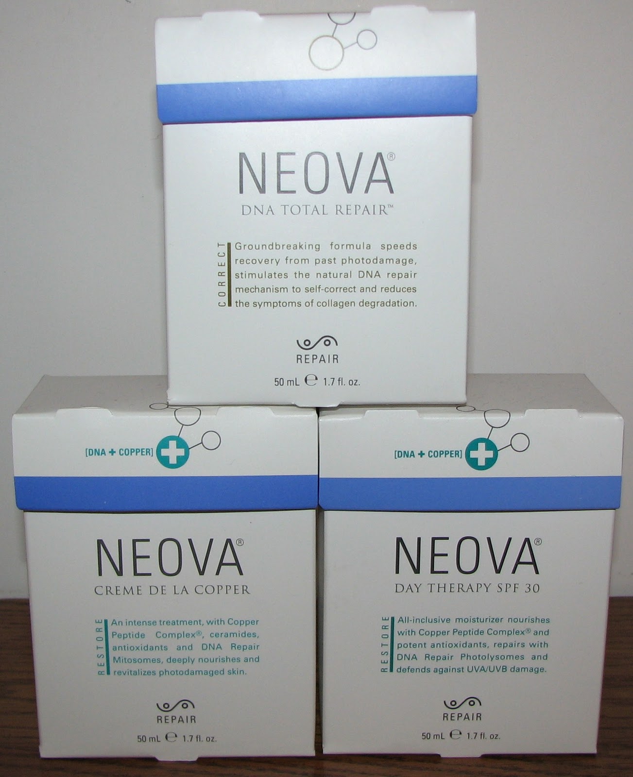I have a three part system from Neova Skin Care here to share with you - Creme de la Copper, Day Therapy SPF 30, and DNA Total Repair.