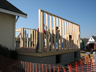 In between all this was the pouring of the patio and basement floors, filling in around the outside (aka the moat you see in a few of the pics), re-routing of the water line… the boring stuff 😉 This past week they framed up the roof and next week we’re due to get the new roof put on. I think I’m going to start updating on the house once a week, just so the posts won’t be this long from now on 😉 Thanks for bearing with me, if you got this far! lol