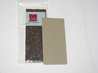 PS - for the hecks of it, here are samples of what our new kitchen cabinets, counters and hardware will look like, as well as what we picked out for roof and siding. Trim will be white.