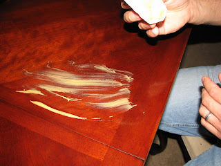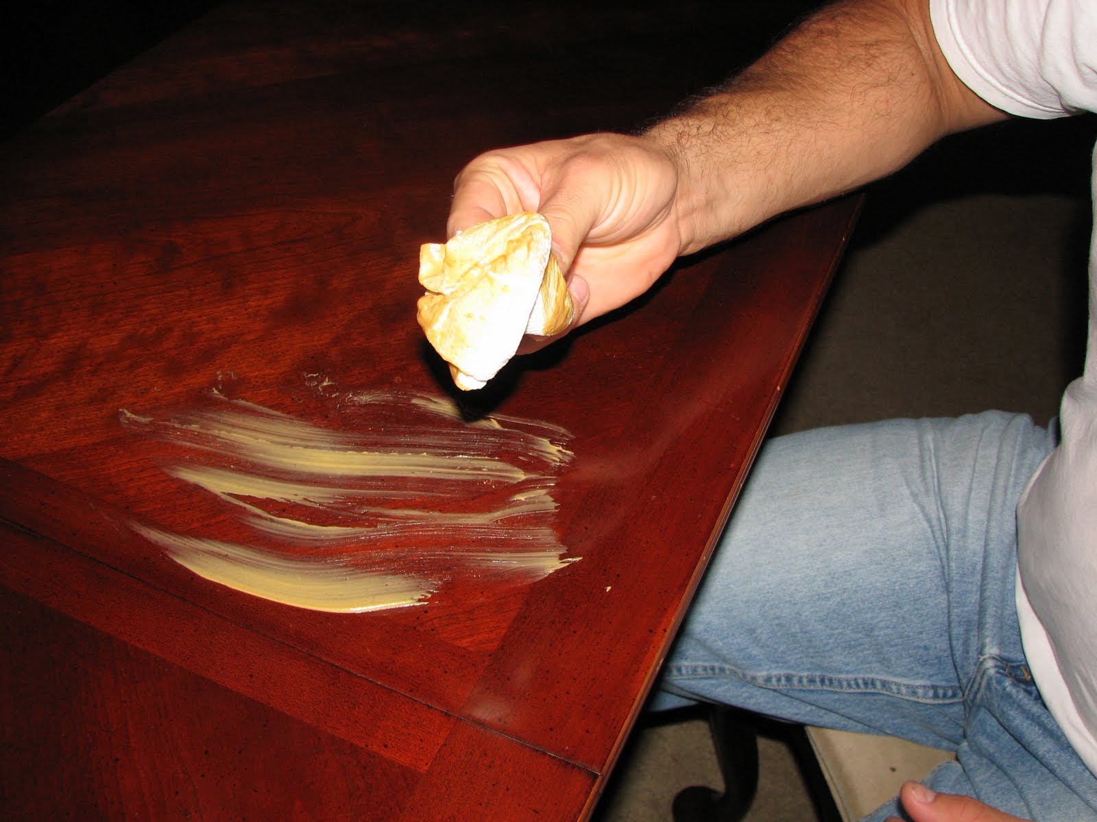 sadly, nothing really =( a lot of polishing and rubbing faded it quite a bit, but I always knew it was there lol we ended selling that set because we wanted to get away from a formal dining area, so it worked out lol