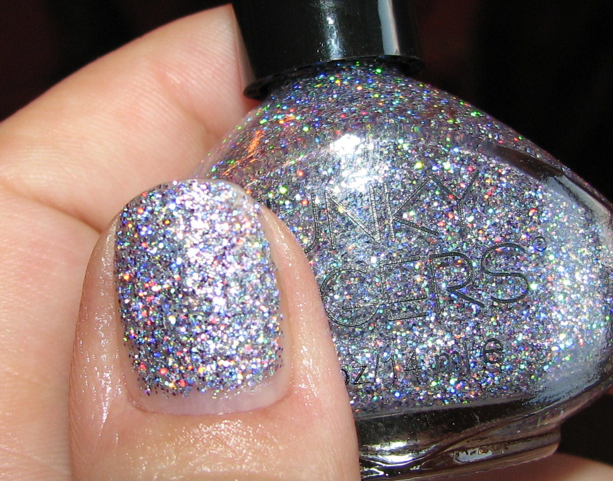Holy freakin glitter ball of holo. I prayed it would be as pretty on the nail as it was in the bottle. And it is. The swatch below is three coats and I can’t stop staring. I feel like I’m at a disco. It does feel rather gritty, even with a top coat, but the fact that it is SO gorgeous means you should probably overlook that if it’s something that usually bothers you.