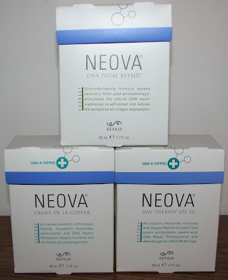 I have a three part system from Neova Skin Care here to share with you - Creme de la Copper, Day Therapy SPF 30, and DNA Total Repair.