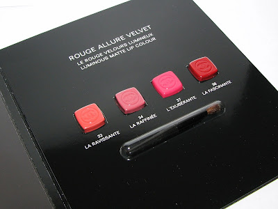 This past week I did a Chanel.com order and one of the samples was a card of 4 of the Rouge Allure Velvet Lipsticks - La Ravissante, La Raffinee, L’Exuberante, and La Fascinante. So, I exfoliated the lips like crazy and got to swatching. It actually wasn’t as bad as I expected!