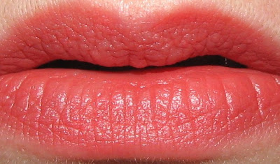 La Ravissante (translation - the beautiful) looked peachy on the card, but swatched on the arm almost like a melon and peach mix. On the lips it definitely hit off as more peach, though it might be more melon on someone with a deeper lip pigment.