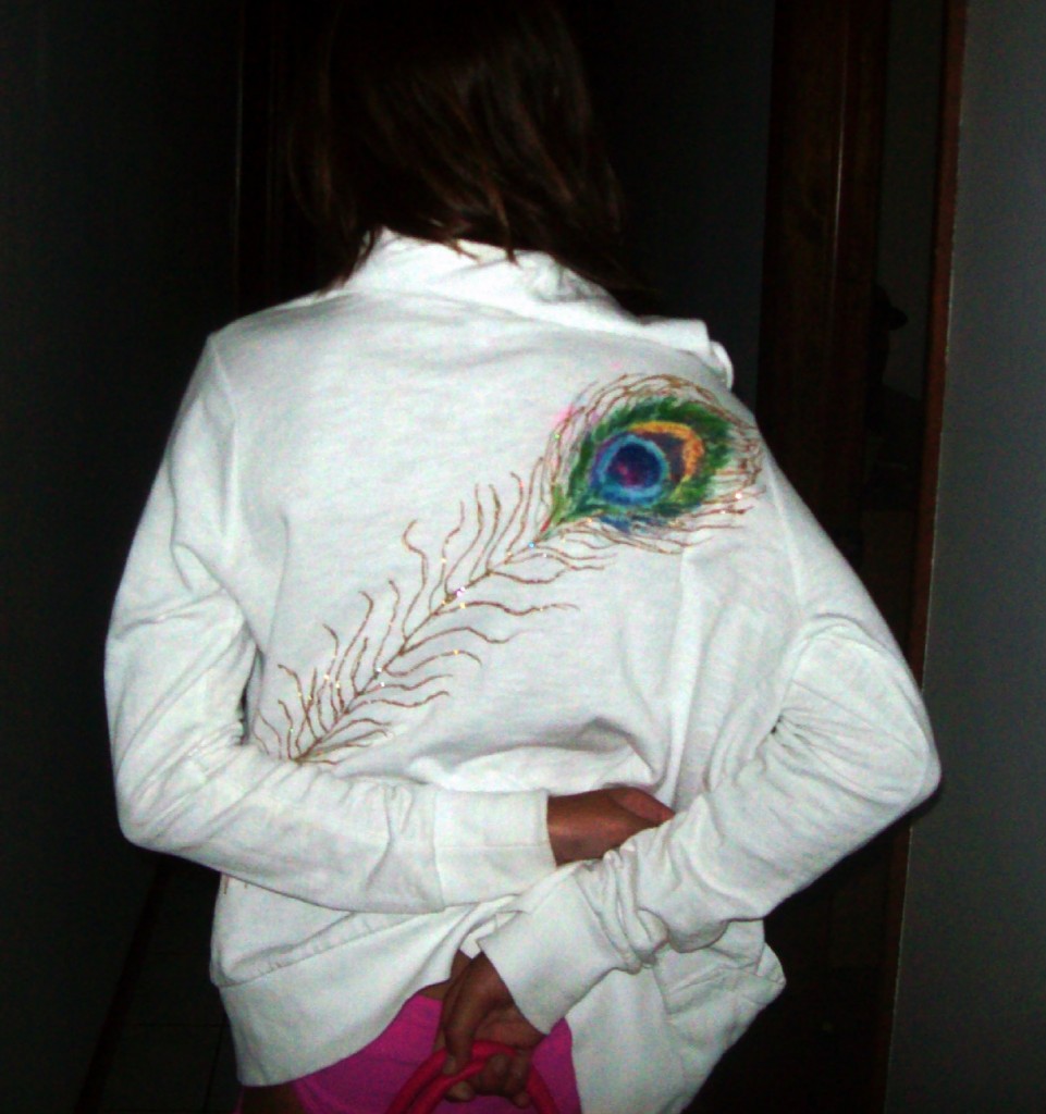 Kaylee (my cousin and future supermodel!) strolls down the hall wearing the Angelika London Peacock Feather Hoody toting the Rebecca Minkoff Cupid in Bright Pink (which is big enough to not only tote your hoodie, but also your makeup bag, hair brush, cell… etc).