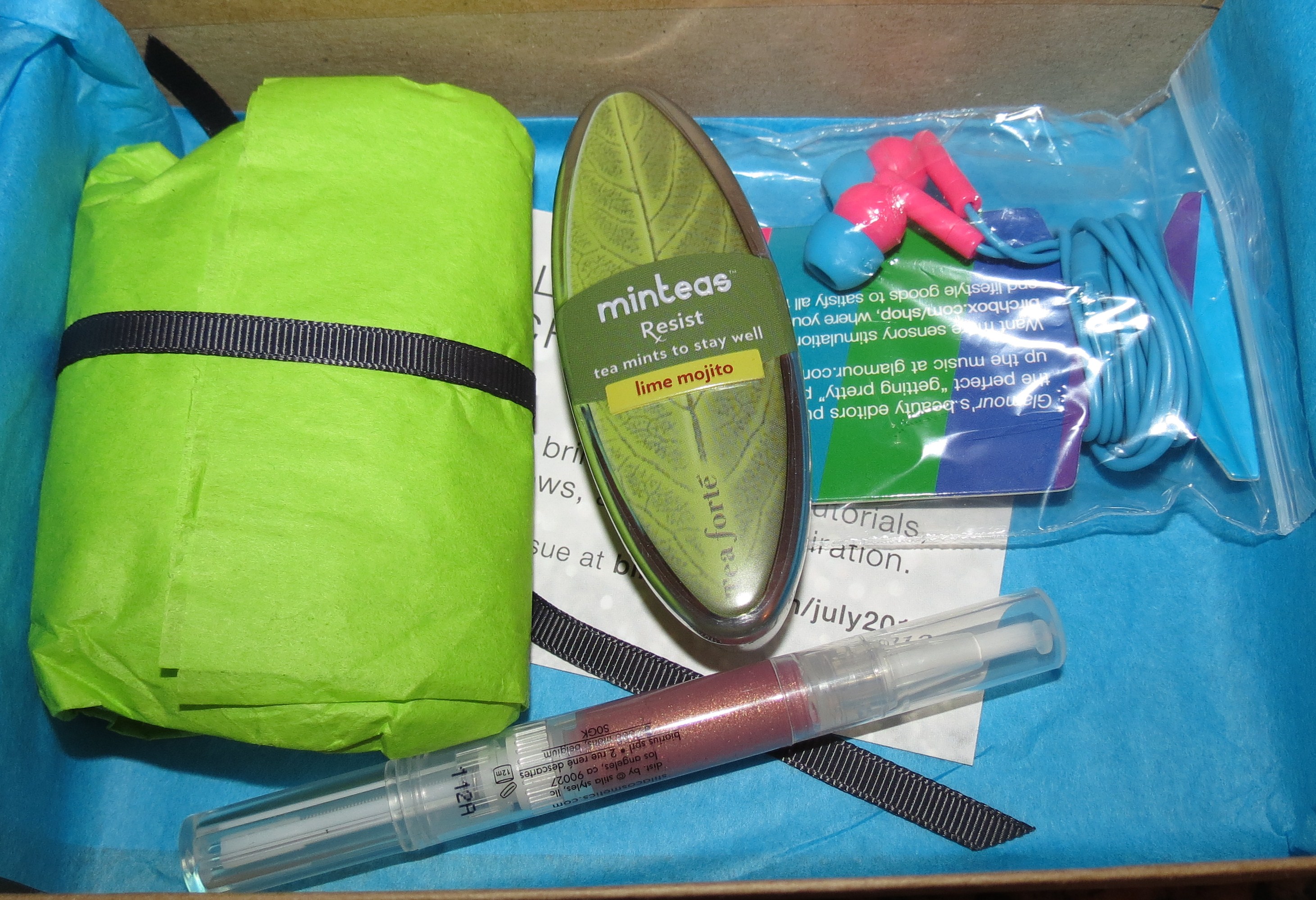 From Tea Forte we get a canister of minteas in Lime Mojito. Admittedly, I’m not the hugest fan of anything lime, so I’m probably not the go to person for this.. but I thought they were nasty. This makes me sad, because I love keeping mints in my purse. There are several flavors listed on the Birchbox website, even a Chai, which would have been more my speed.