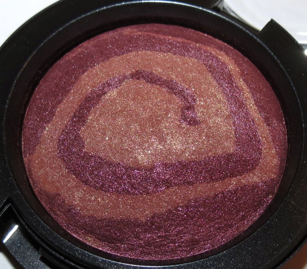 Stratus is described as an amethyst and gold brown melange. I thought it would be a lot darker than it is, but when used lightly it offers up a great plum tint for your cheeks. The shimmer is there, but not as loud as with Solar Ray.
