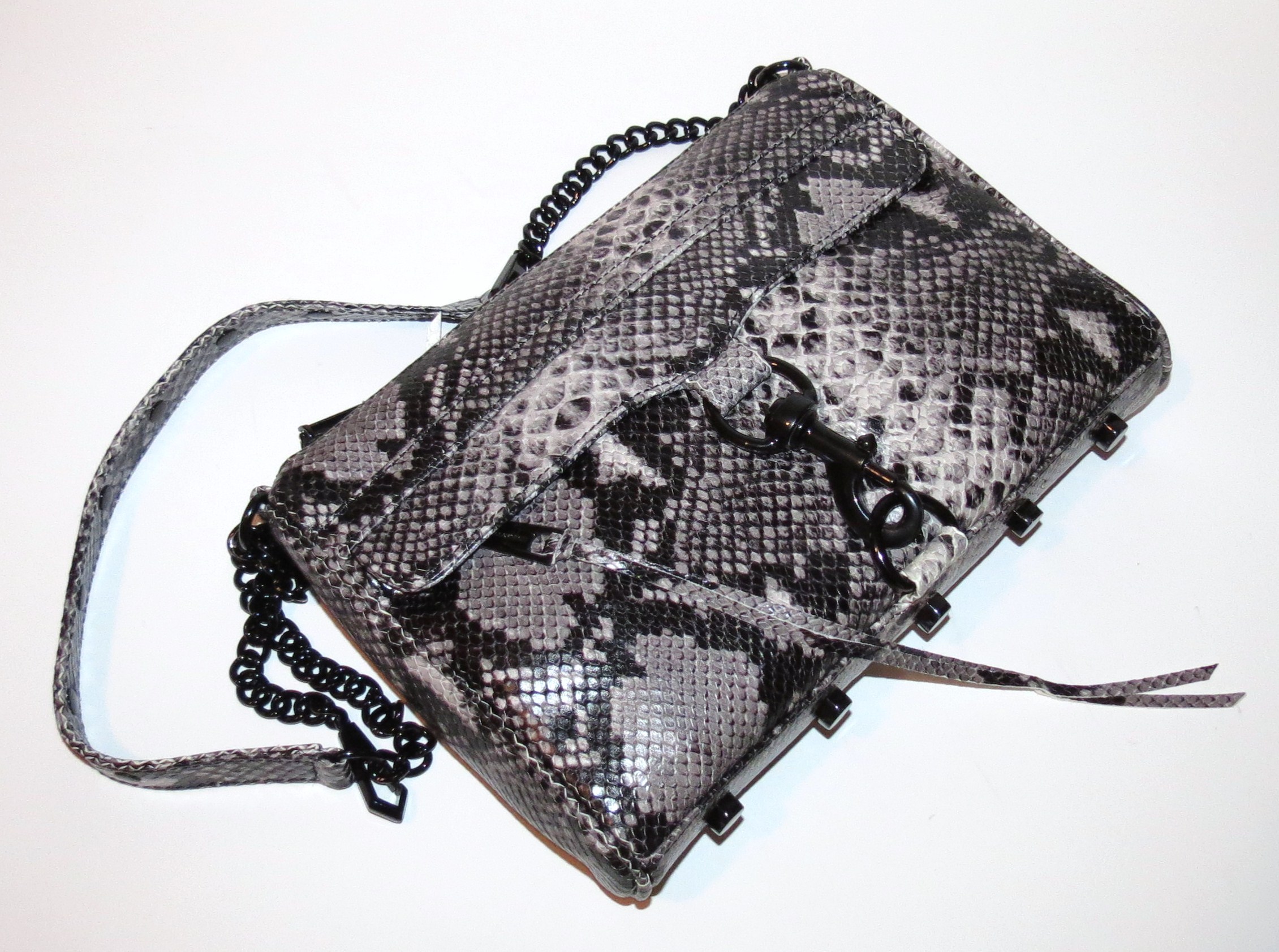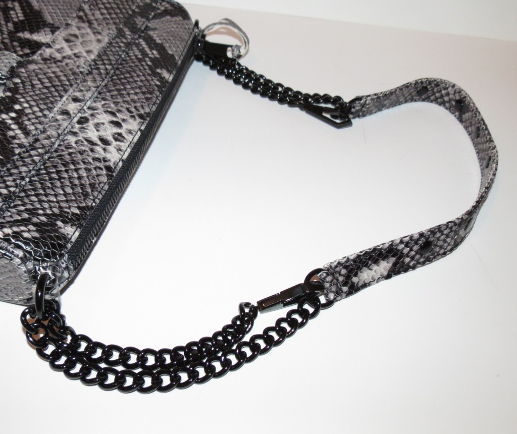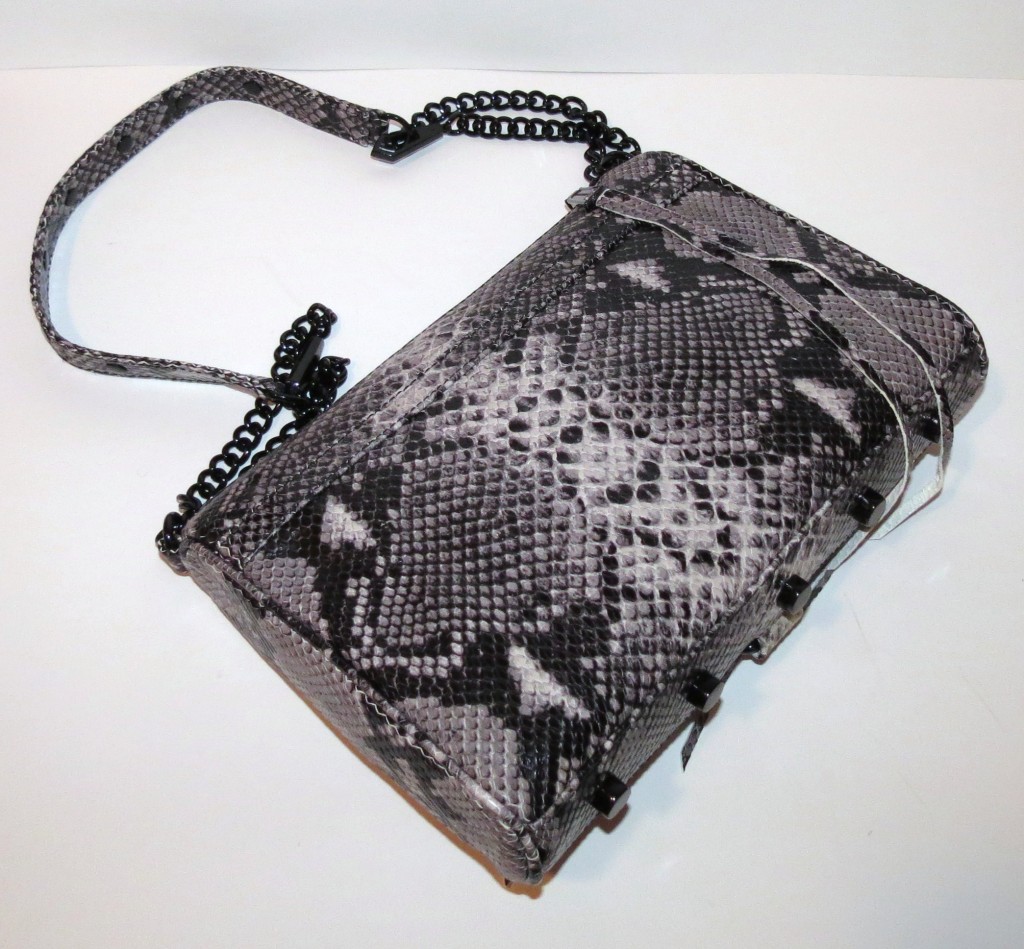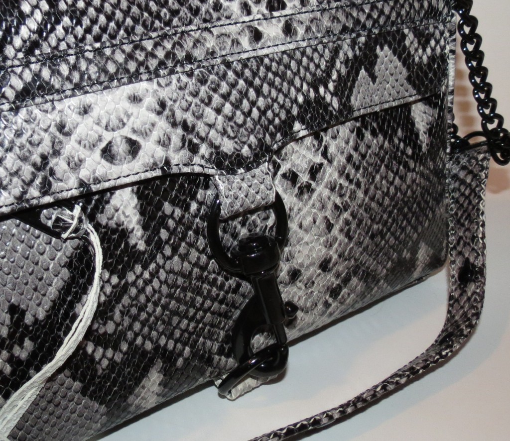 Imagine the huge and really rather goofy grin that spread over my face when I saw it was a Rebecca Minkoff Embossed M.A.C. Clutch (though, to me I say snakeskin… the color is actually listed as Natural). I needed a bag like this. Okay. Again. Not accurate. No one NEEDS a handbag when they have as many as I do… but really, I WAS in the market for a nicer, not so huge bag for Fall. This one was perfect, and on sale. WIN.
