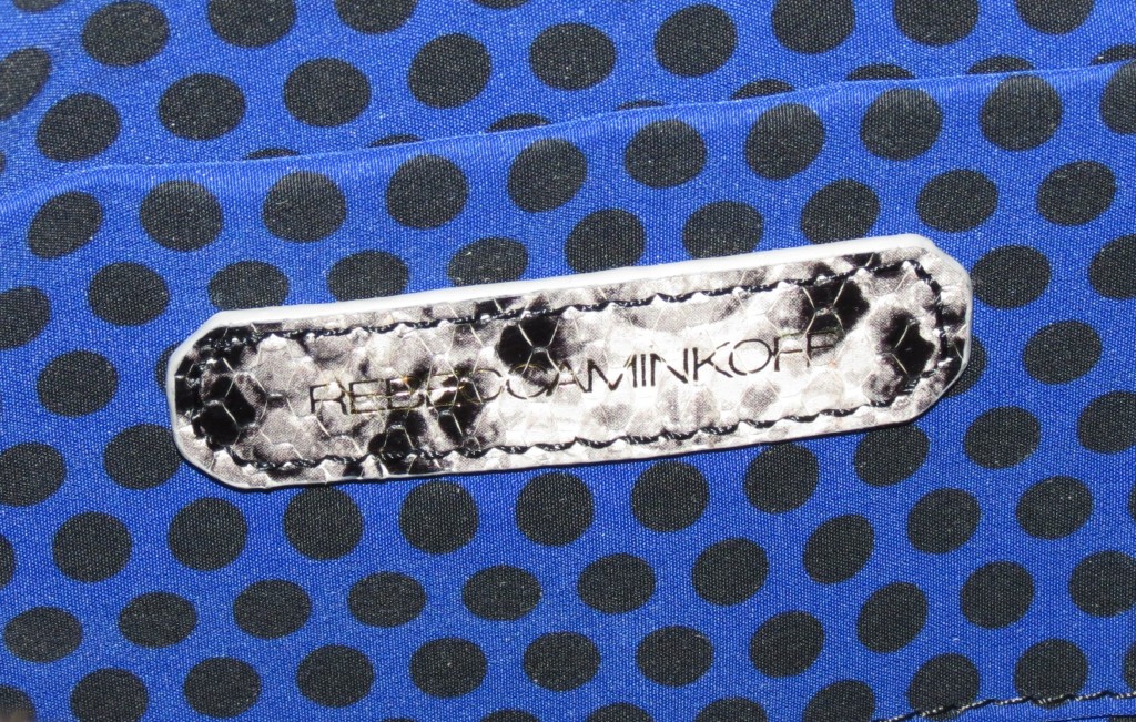 This one is a bit bigger than the Mini M.A.C. and not a cross body. It’s a lovely shoulder bag with a lot more room than you’d imagine, lined with the usual blue and black Rebecca Minkoff interior. Above is a shot of the front, which features the zippers with tassels and a clip lock in the front. You can open that for a small pocket… perfect for keeping notes, lists… flat things (you don’t want the front to bulge.. that would just be bizarre).