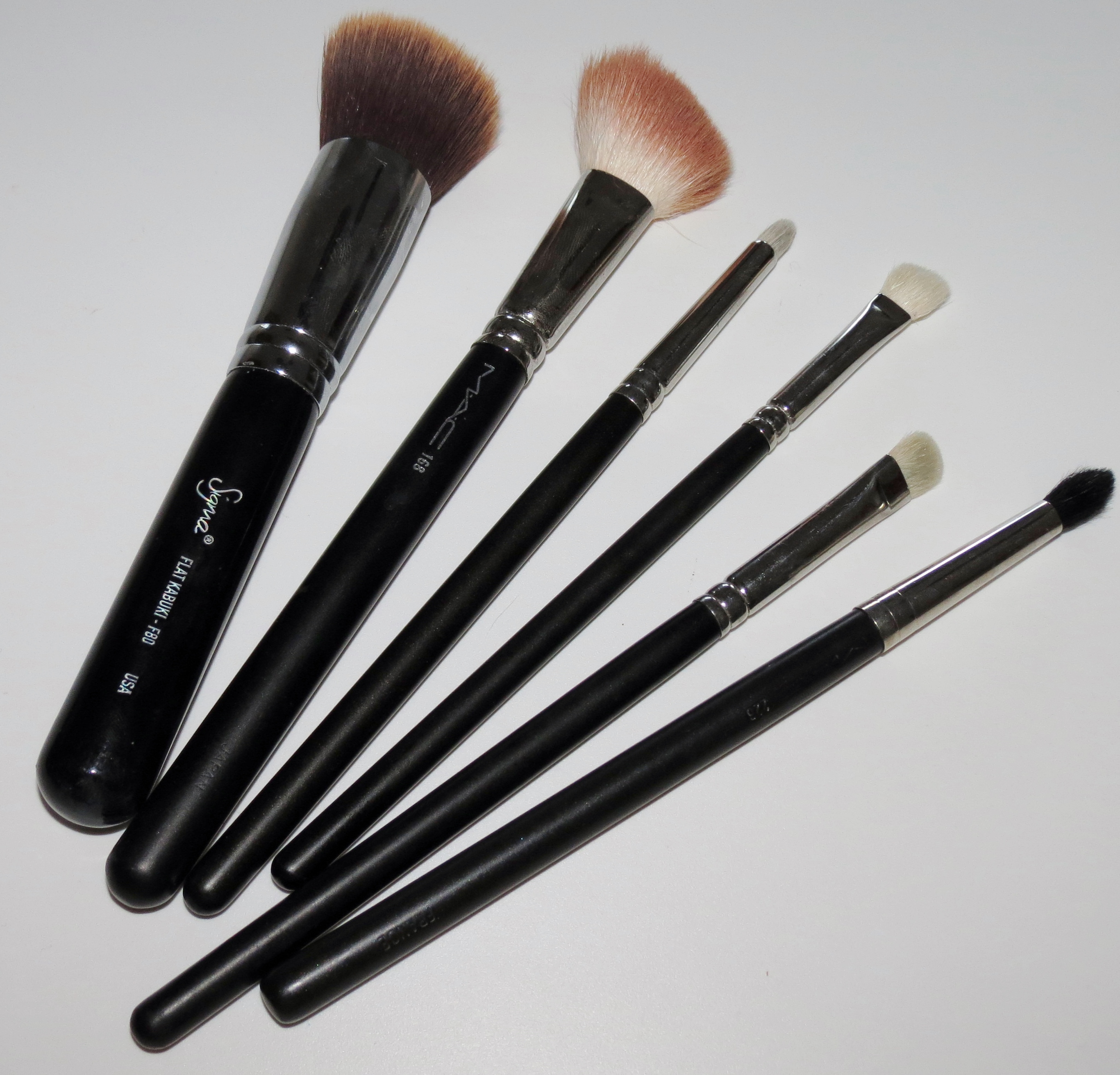 As for brushes, it’s easy to stay minimal because you can take brush cleanser in a travel bottle and wash them every night. The brushes that I have to have with me are always the Sigma F80, and MAC Brushes 168, 239, 219, 272 and 226.