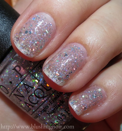 Rose of Light has a clear base with large silver glitter and small rose gold glitters. Three coats