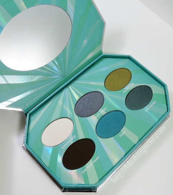 As you may know (or at least have heard), Tarina Tarantino shadows are super smooth, soft and of excellent quality. The Emerald Pretty Eyeshadow Palette includes six large eye shadows in Glinda’s Kiss, Silver Shoes, Dandy Lion, Saw Dust Heart, Ozma and Very Wicked.