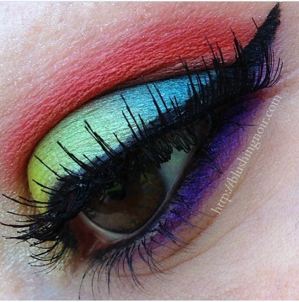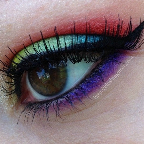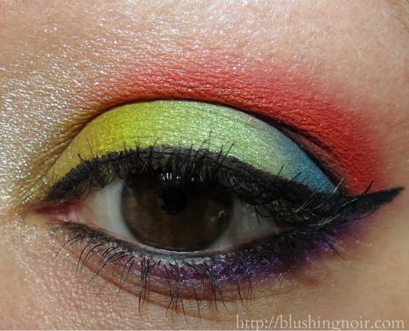 I had way too much fun with this eye look. At first I was a little overwhelmed with all of the color. After all, I’m used to neutrals with maybe a pop of something bright. I didn’t want simple but I didn’t want it to look mud. I went with a kind of rainbow look because I’ve always wanted to try it and if it looked bad I could always wipe it off.