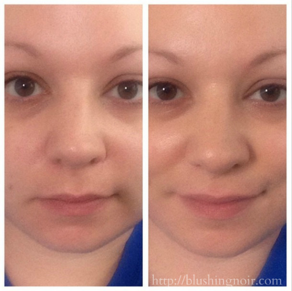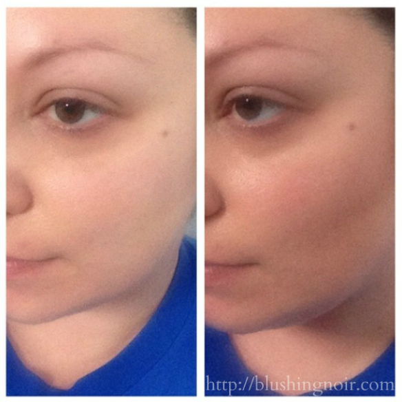 I began with my foundation, which is in the shade 005 Beige. Below you can see the Before (left) and After (right) photo. You only get to see me in no makeup (in the before photo) because I love you guys and loved how natural the Temptu AIRbrush System made my face. You can adjust the dial or layer for more coverage.