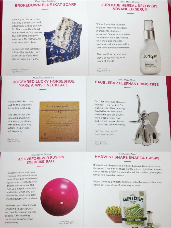 Tell you more about what this POPSUGAR Must Have Box is all about? Alrighty, then! Every month subscribers will receive hand-selected items in beauty, fashion, home, fitness and food worth over $100, while only paying $39.95 (shipping is free!). If you want to join up, or see what was in previous boxes, click here.
