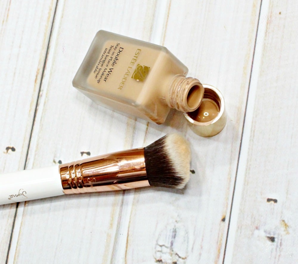 Because the Estée Lauder Double Wear is housed in a glass bottle (aka definitely not my favorite packaging) the best way to use it is by pouring a small amount on the back of your hand (or a mixing palette like this one, if you have it) and tapping your brush into the product, then sweeping it onto your face. I found that I used less product this way vs. when I was putting it directly to the brush or on my fingers. The beautyblender works okay, but the coverage won’t be there since you’ll sheer it out some.