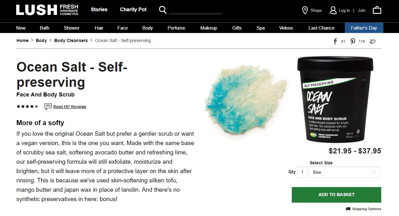 I don’t use them as often as I should but my absolute favorite is the LUSH Ocean Salt - Self-Preserving Body Scrub. It’s not super abrasive for the body and smells amazing.