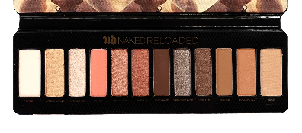 The Urban Decay Naked Reloaded Palette is swatched below dry and on bare skin (no primers):