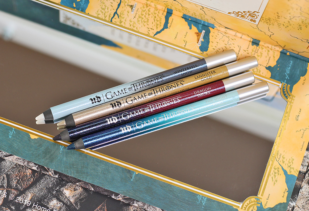 The Urban Decay x Game of Thrones 24/7 Glide-On Eye Pencils ($22.00) are the same creamy, ultra-soft, long-wear, waterproof eyeliners that we all know and love…. with a really awesome theme twist!