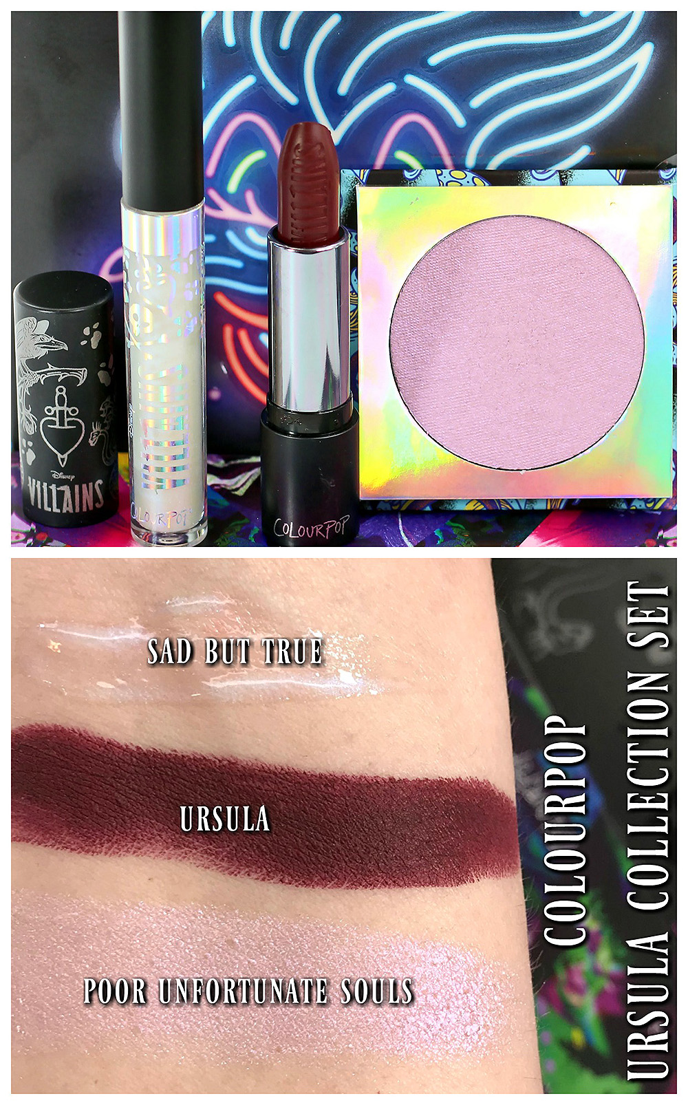 Ursula Collection Set ($25.00). This limited edition set carries 3 products from the Colourpop Disney Villains line and they all focus on everyone’s (except maybe Ariel) favorite sea witch, Ursula.