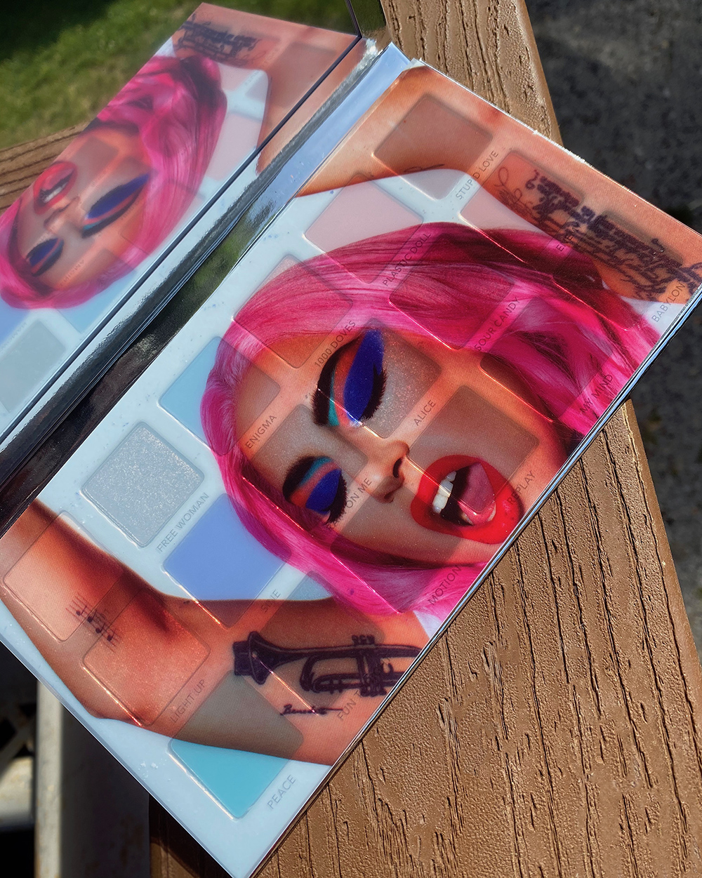 Below I swatched HAUS LABS Stupid Love Eyeshadow Palette in natural, direct sunlight (shadows are swatched dry and without primer):