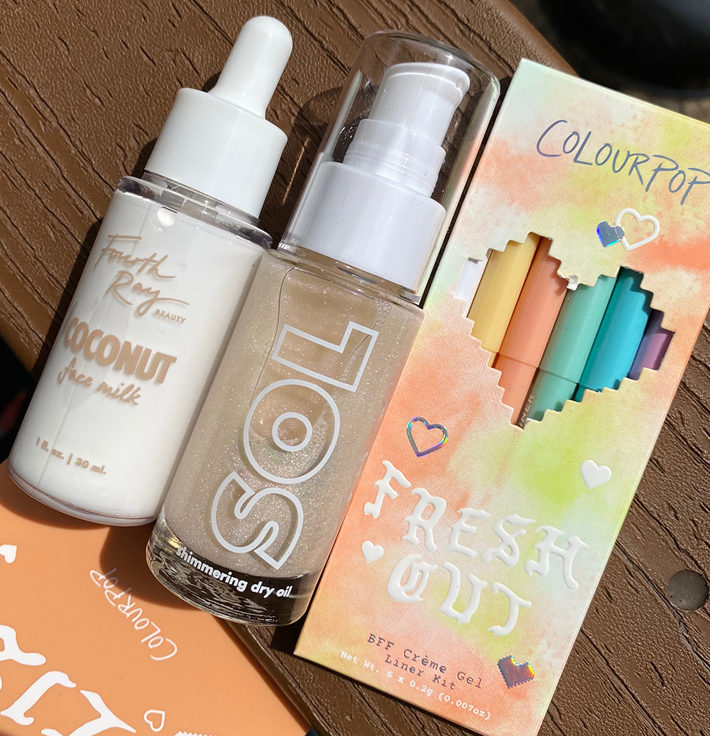 SOL Beauty Rainbow Glow Mini Shimmering Dry Oil ($10). These shimmering dry oils are so perfect for an all-body Summer glow + they feel fabulous! Rainbow Glow is described as being a soft opal with highlights of pink, gold, silver, blue, and violet.