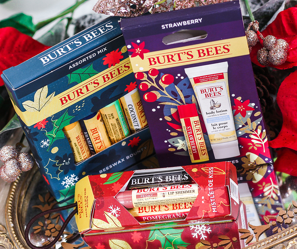 Shown in this post are my top 3 favorite holiday kits for gifting - Burt’s Bees Strawberry Hive Favorites (which includes a Strawberry Lip Balm and Milk and Honey Body Lotion Mini), Burt’s Bees Beeswax Bounty (a festive, assorted 4-pack sampler of lip balms in classic Beeswax, Vanilla Bean, Cucumber Mint and Coconut & Pear), and Burt’s Bees Mistletoe Kiss (an ornament containing Pomegranate Lip Balm, Peony Lip Shimmer and Hibiscus Tinted Lip Balm).
