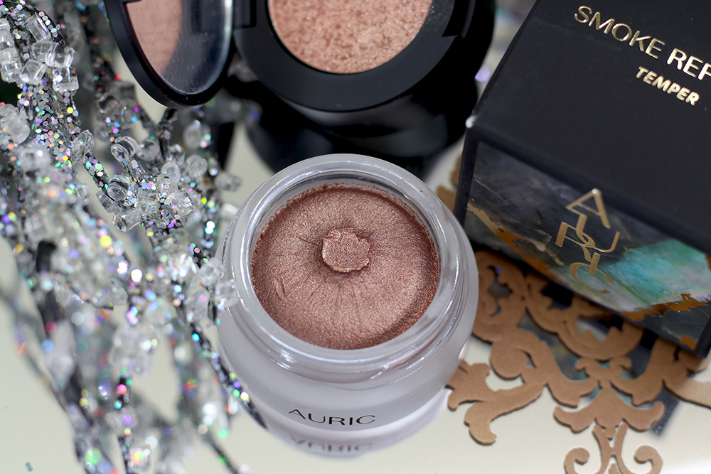AURIC Smoke Reflect launched with three shades - Temper (rose gold), Defiance (bronze/gold), and Ego (silver). Initially I wanted all three. I pared down to Temper and Defiance. At the end of it all I only picked up Temper, since I wanted to make sure the formula would play well on my oily lids… and I regret that so much.