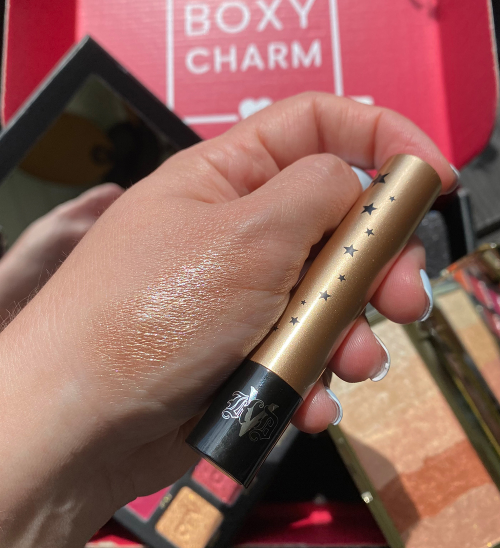 Month-to-month unboxing my Boxycharm always impresses me because 9 times out of 10 there is a beauty product in there that blows me away. One that I never would’ve purchased on my own. This month that product is the KVD Vegan Beauty Dazzle Stick Eyeshadow. A unique surprise considering I don’t use anything from this brand and had pretty much written them off, PLUS I find the product itself to be quite different.