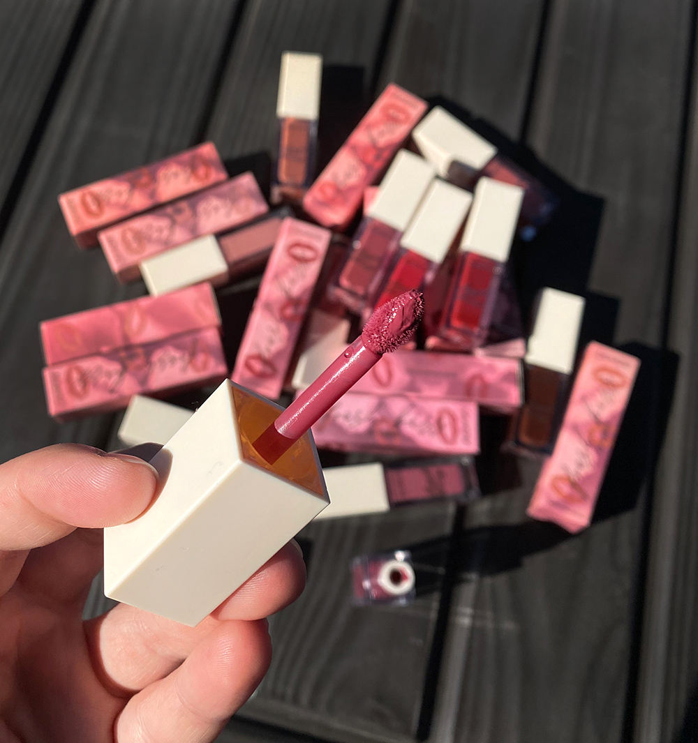 12 shades are available in: Alt Rock (warm berry), Page Me (deepened rose wood), Teen Spirit (cool mauve pink), 411 (soft peachy nude), Docs (deepened rich chocolate), Baby Doll (mid-tone warm, nude beige), Strike a Pose (deepened rose), BB Spice (muted pinky nude), Scrunchie (rich deepened red), Let’s Vogue (intense red), Beverly Hills (soft, warm rose), and The Rachel (soft coral).